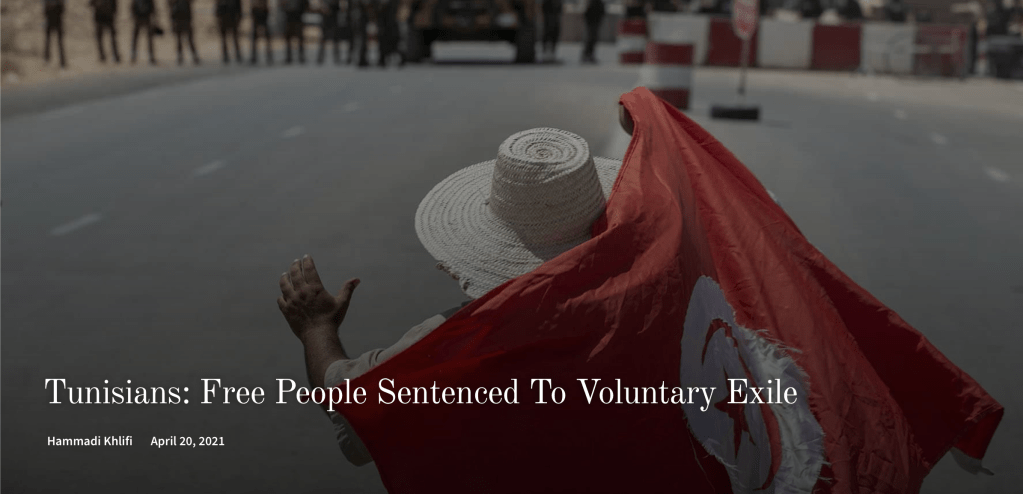 Tunisians: Free People Sentenced To Voluntary Exile – Democracy For The Arab World Now – April 20 2021. Read here.